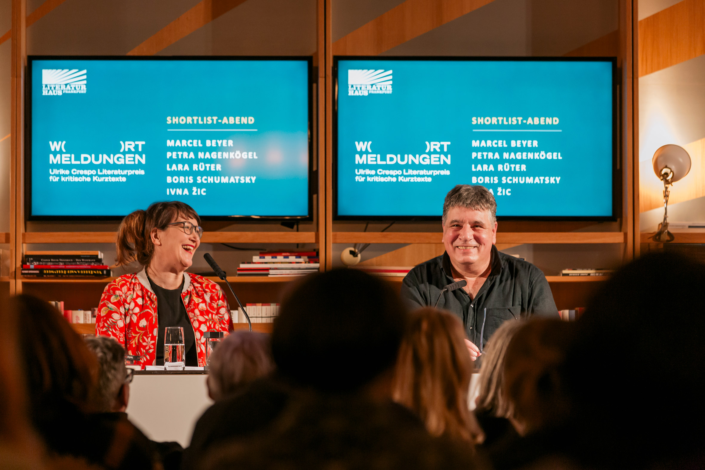Marcel Beyer, Petra Nagenkögel, Lara Rüter, Boris Schumatsky und Ivna Žic wurden von der Jury für den WORTMELDUNGEN-Literaturpreis 2026 nominiert.